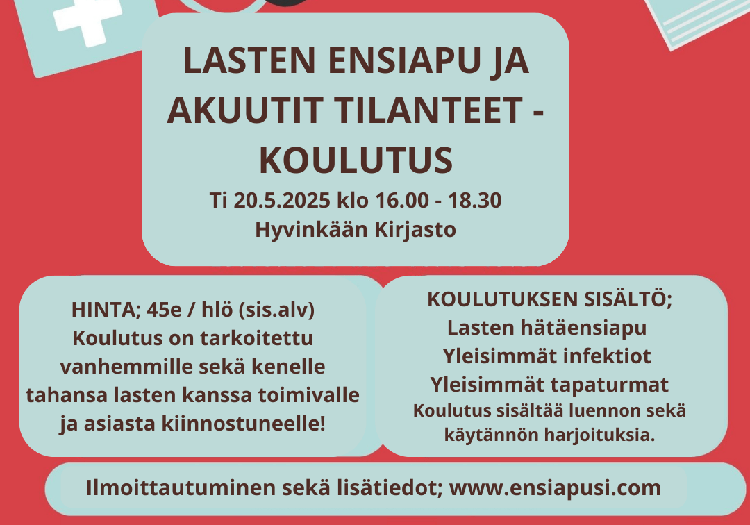 Lasten ensiapu ja akuutit tilanteet-koulutus tulee taas ❤️🩹